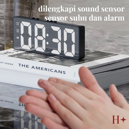 Jam Meja Alarm LED Digital Mirror Menggunakan Baterai/Listrik Sensor Suara