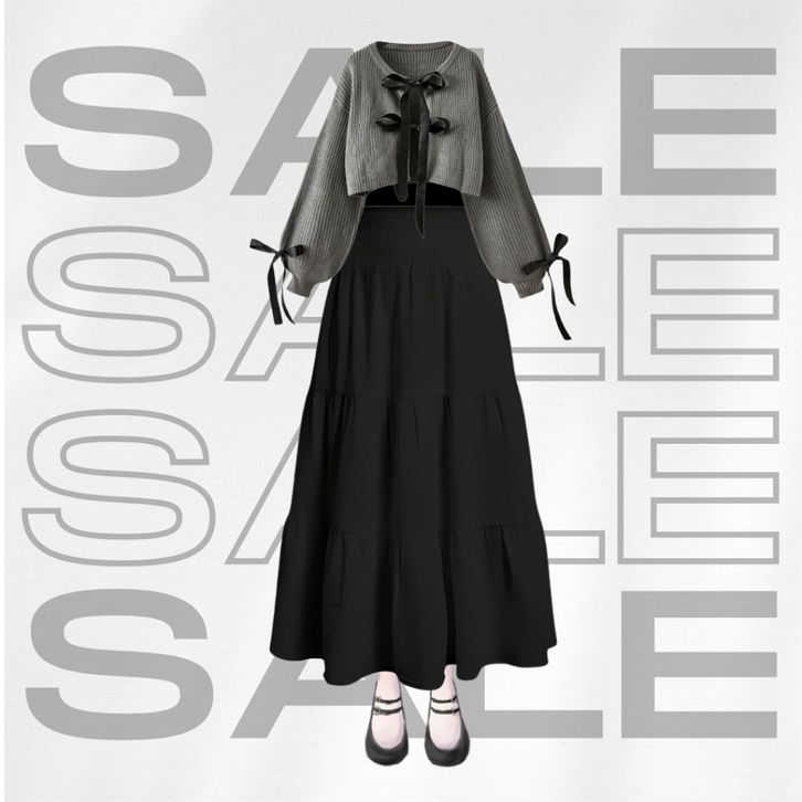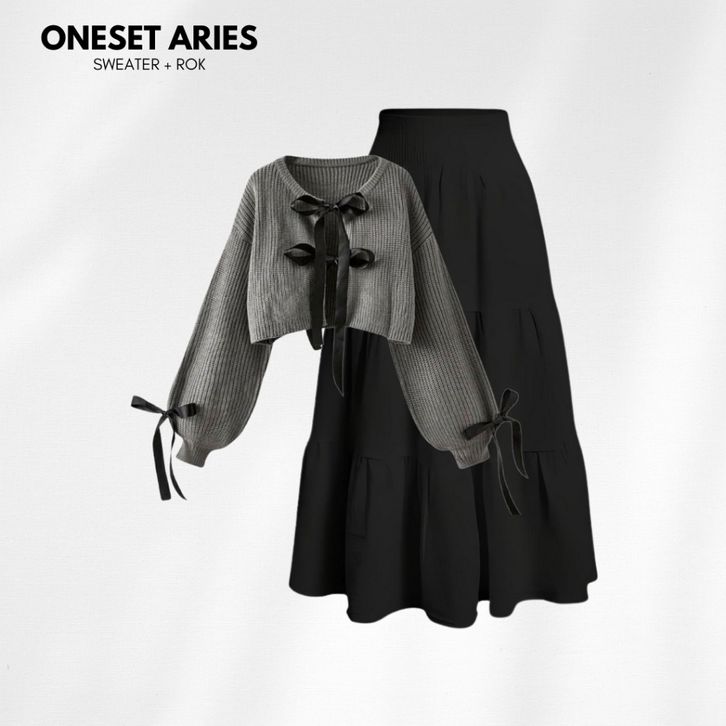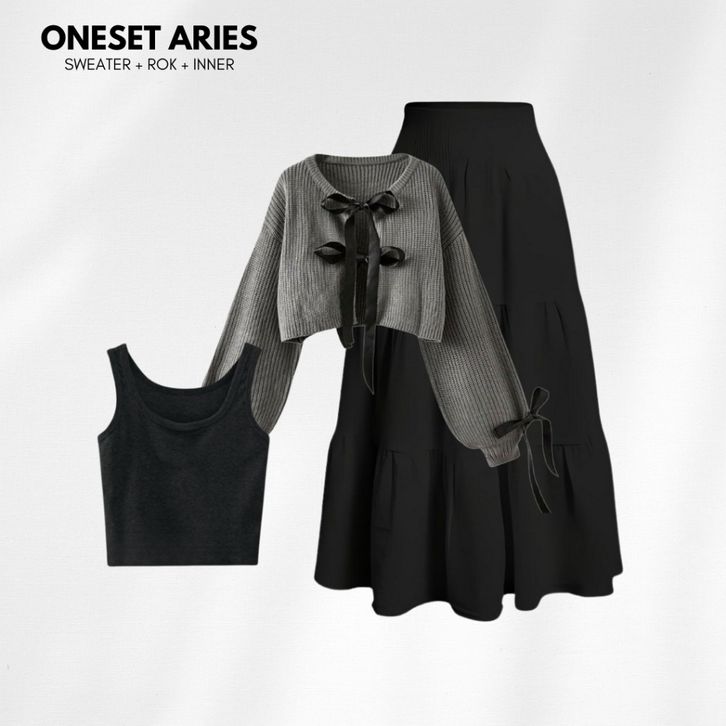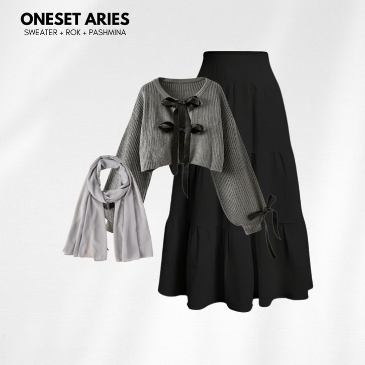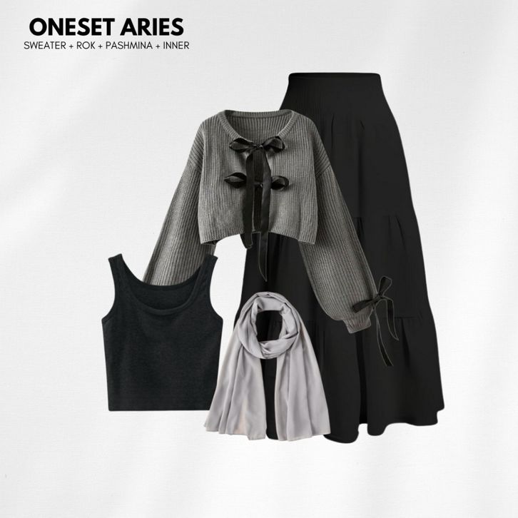 Termurah&Terbaru✅ Outfit Set Aries Setelan Pita Lucu ( Sweater + Rok + Tanktop + Pashmina ) One Set OOTD Hijab Korea