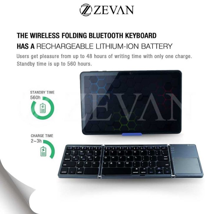 ZEVAN Keyboard Lipat Wireless Foldable 3 Layers B033 with Touchpad for Universal