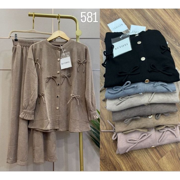 Termurah&Terbaru✅ Setelan Celana Wanita 581# PITA KUYIFEI Full Kancing (Lengan Kerut) Cakep Banget Bebb