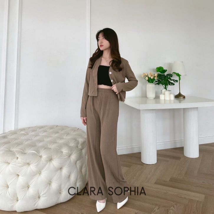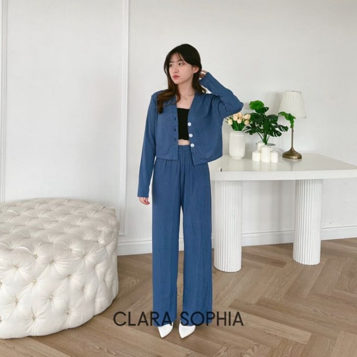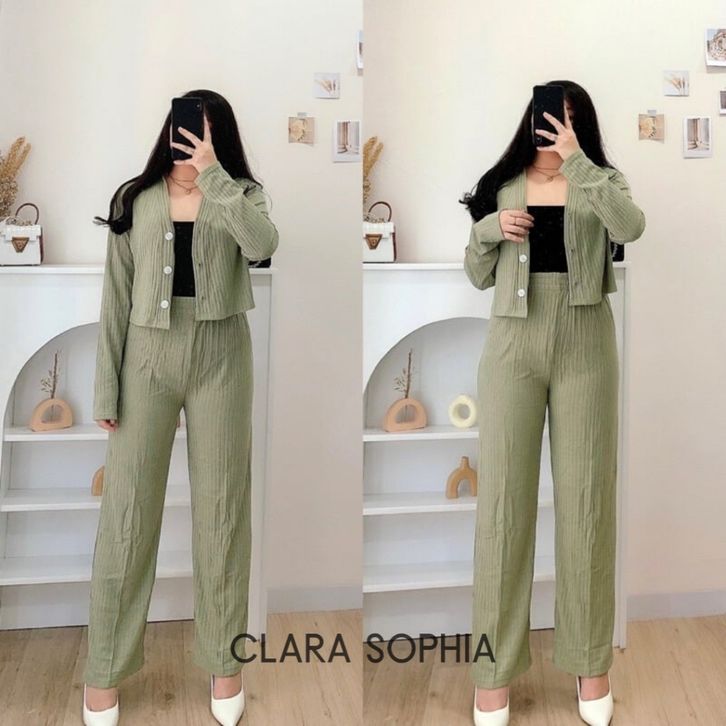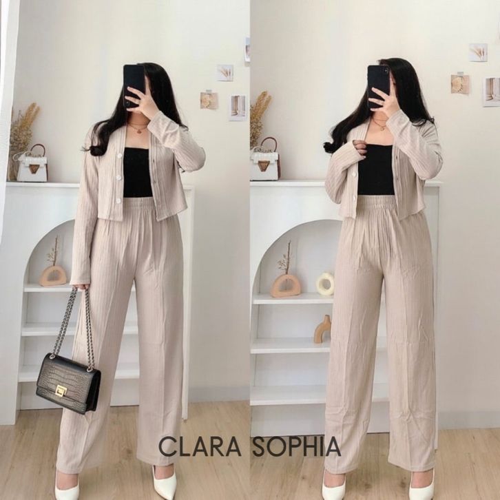 Termurah&Terbaru✅ Clara - Set Casey Knit Hornet Cardigan Crop Setelan Baju Wanita dan Celana Kulot Pants One Set Crop To