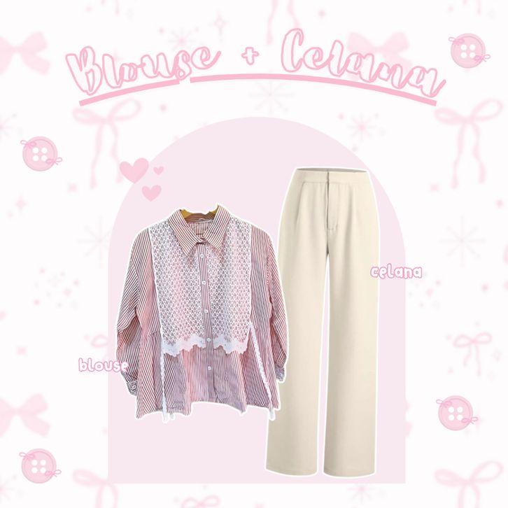 Termurah&Terbaru✅ Oneset Outfit Pink Remaja (Hijab+Blouse+Celana) Set OOTD Wanita Cute Kekinian - LO29
