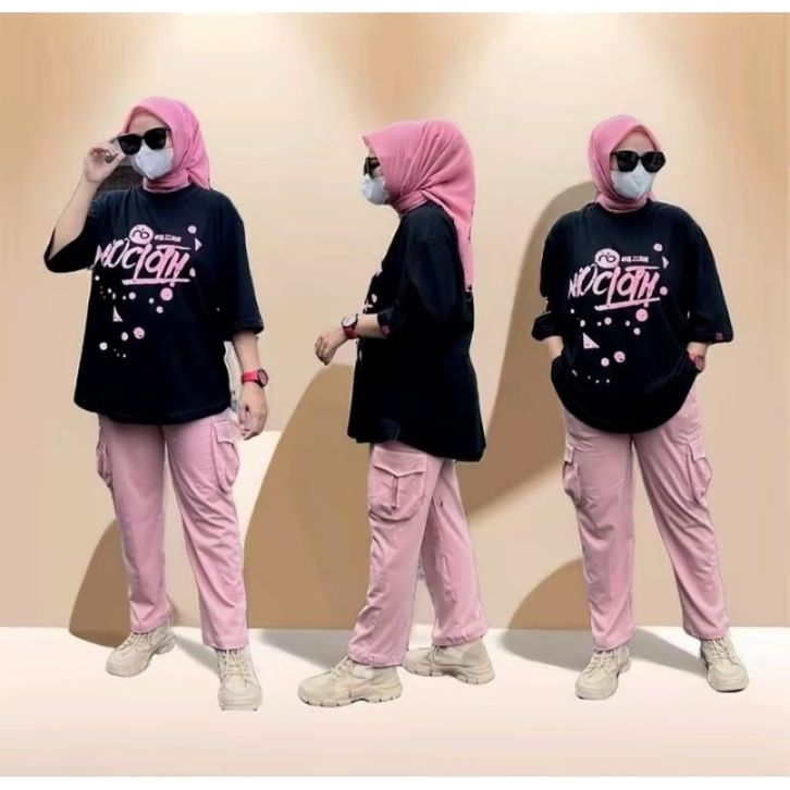 Termurah&Terbaru✅ Set Cargo Printing Setelan Baju Wanita Celana Cargo Pure Cotton