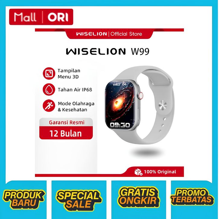 WISELION Smartwatch W99 Bluetooth Call Anti Air IP68 Android IOS Layar AMOLED Jam Tangan Pintar GPS