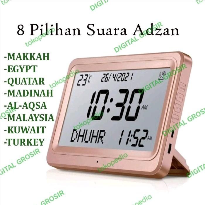 Jam Adzan Digital LCD Jadwal Sholat Otomatis - 8 Pilihan Suara Adzan - Putih