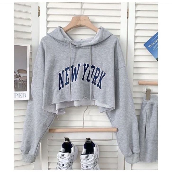 NEW YORK Croope Hoodie Oversize SWEATER CROOPE HOODIE Wanita Fleece (LD 110, P 48)
