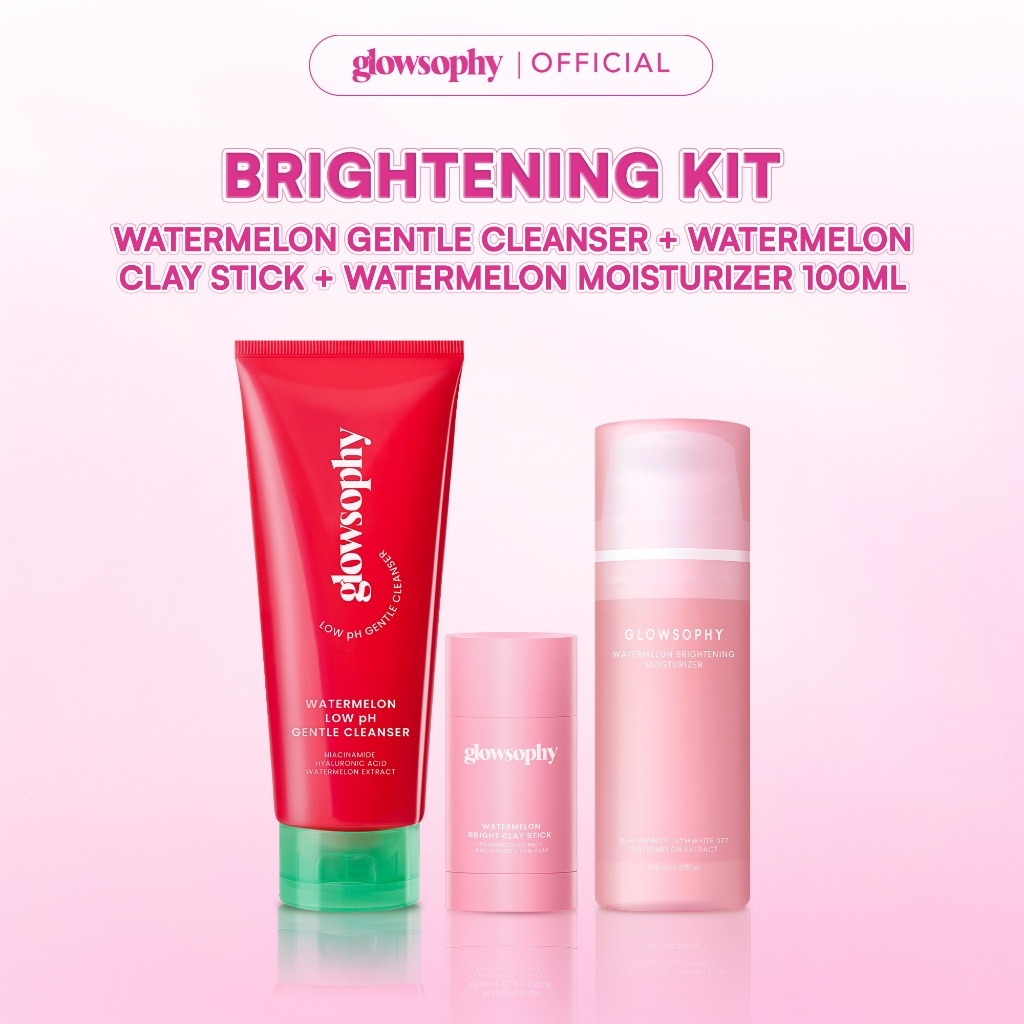 SKINCARE WANITA GLOWING BPOM / GLOWSOPHY BUNDLE 3IN1 BRIGHTENING SET WATERMELON CLAY STICK + WATERMELON GENTLE CLEANSER