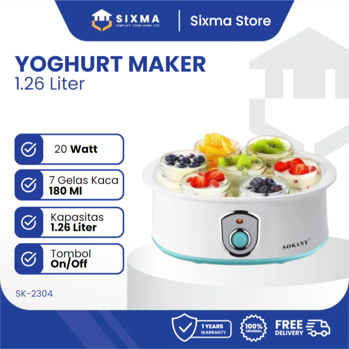 Mesin Pembuat Yogurt Yoghurt Maker 7 Cups Kapasitas 1.2 Liter Low Watt Sixma SK-2304