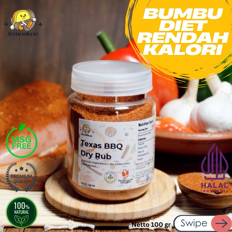 Lemonkoe Bumbu Marinasi Kering Texas BBQ Healthy Dry Rub Diet Obesitas Rendah Kalori Enak
