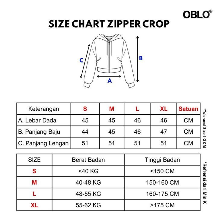 OBLO Hoodie Zipper Crop Polos Oversize S-M (Allsize) L-XL (Bigsize)