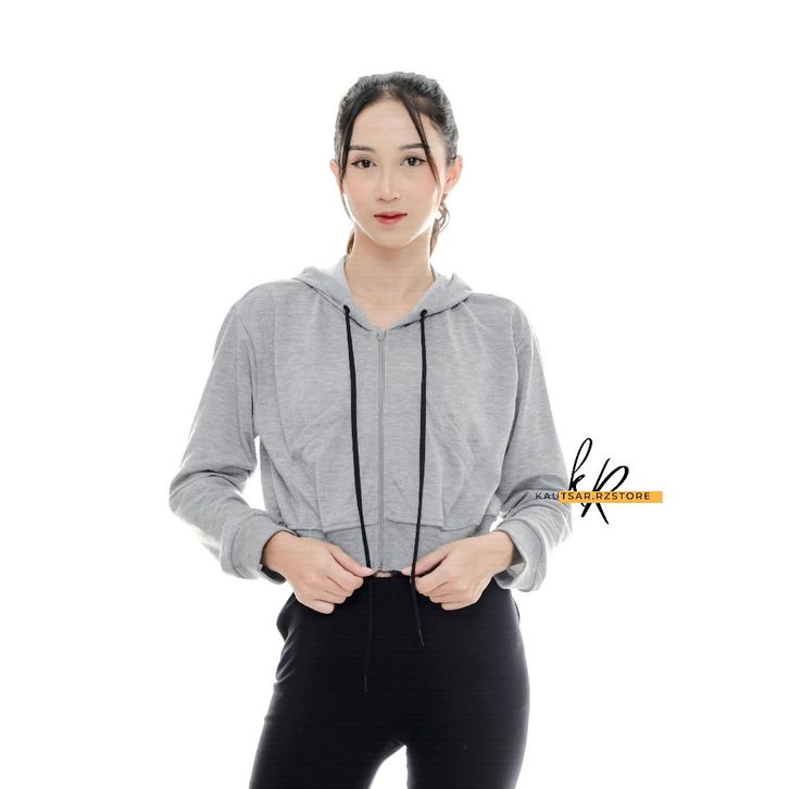 HOODIE ZIPPER BASIC CROP POLOS PREMIUM Jacket Crewneck Sweater Hoodie Wanita Kekinian Fashion Outfit Ootd Korean