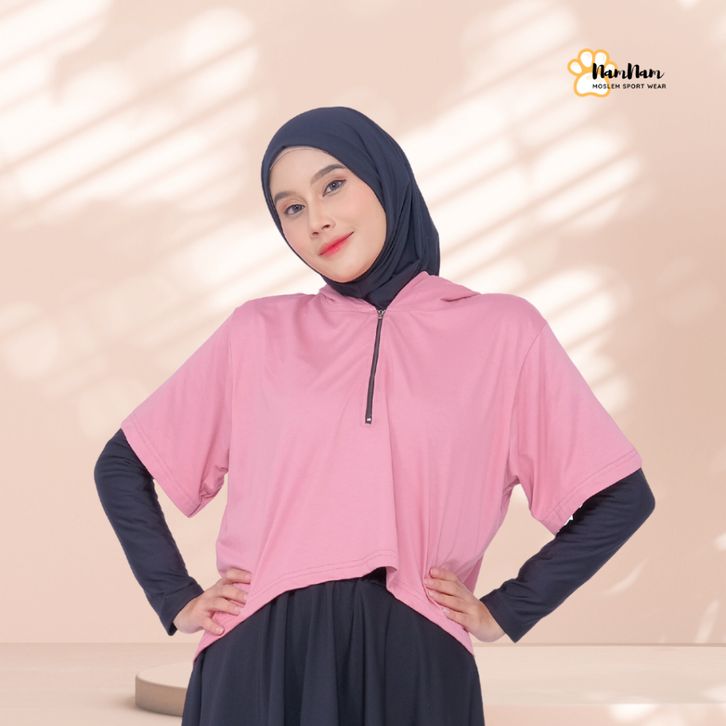 Asymmetric Hoodie Olahraga croptop Wanita Muslim
