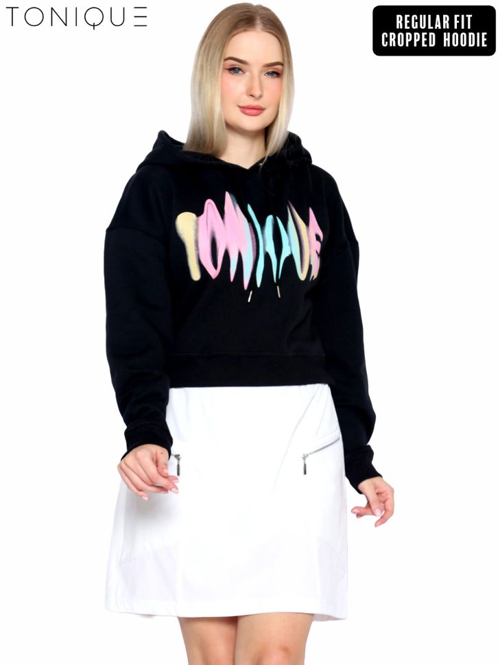 TONIQUE Wanita Hoodie Crop Katun Fleece Hitam SOPHIA Women's Regular Fit Cotton Fleece Crop Hoodie Black