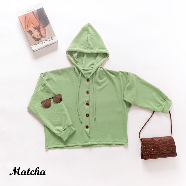 ALYA Hoodie Crop Wanita Button Waffle Knit Hoodie Wanita Rajut