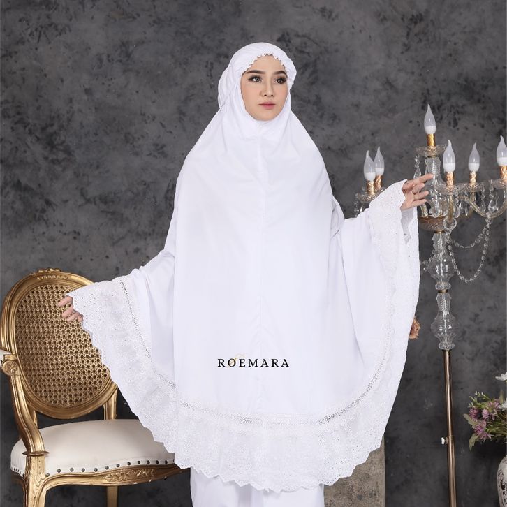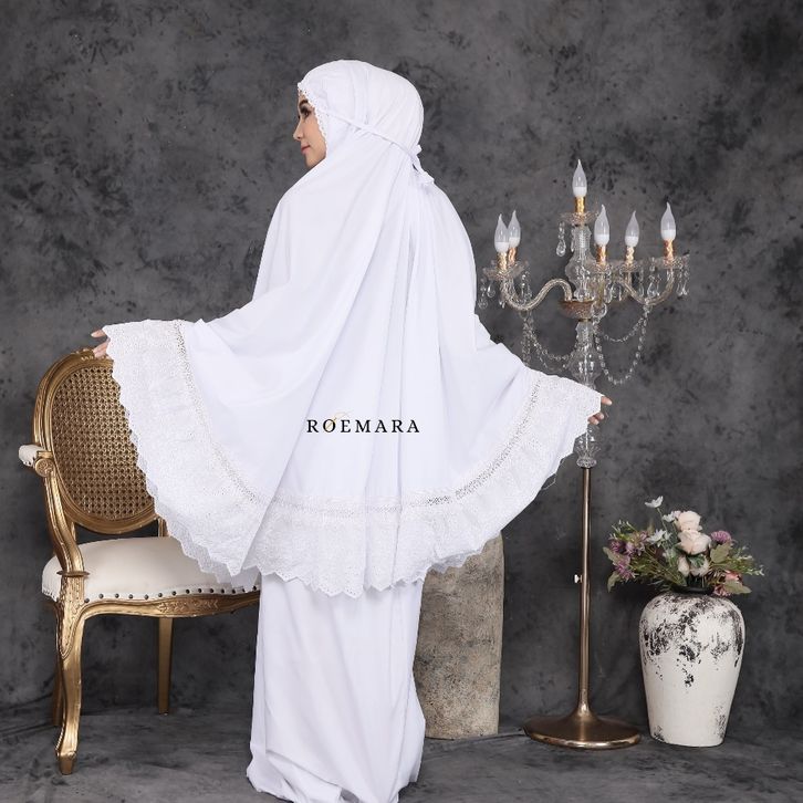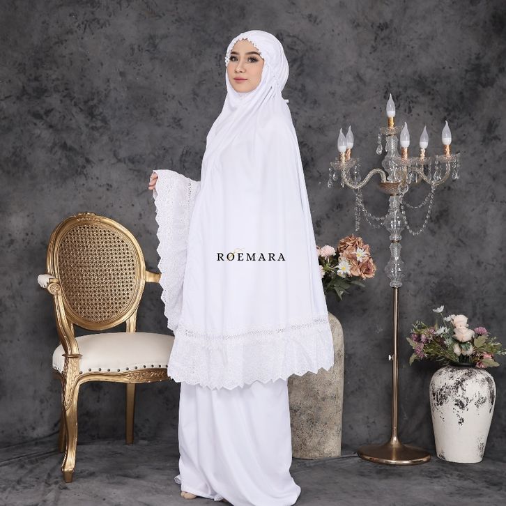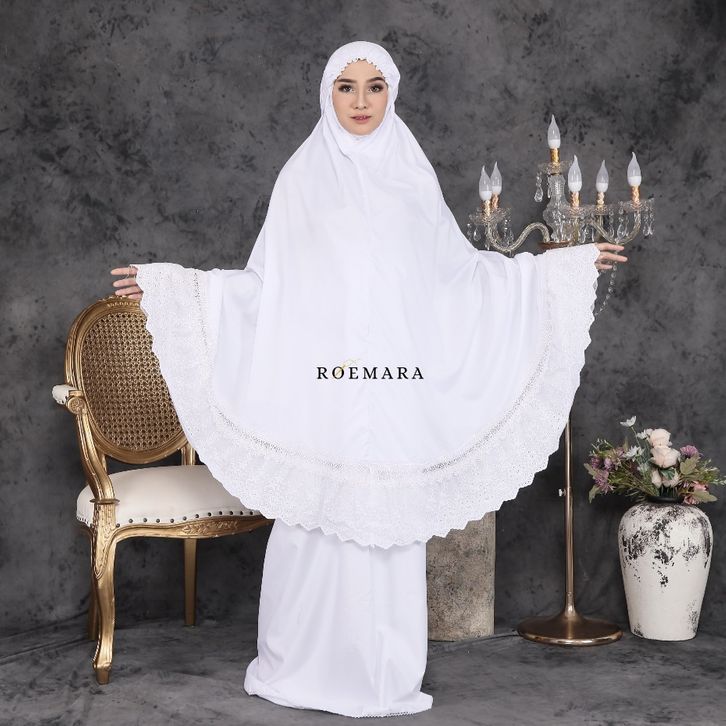 RK - ROEMARA - Mukena Dewasa Putih Polos Renda Bordir | Mukena Aisyah