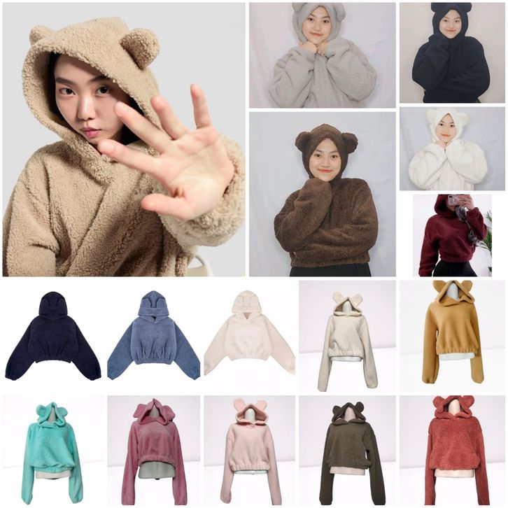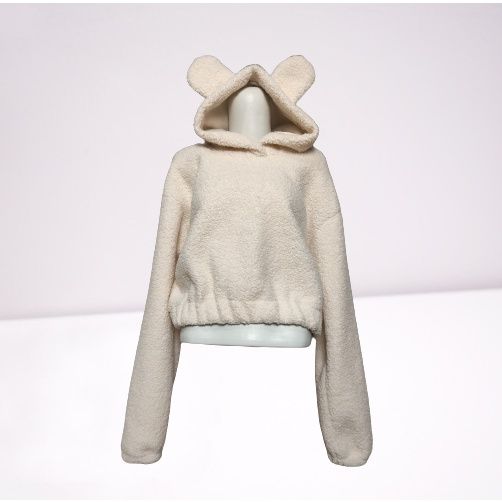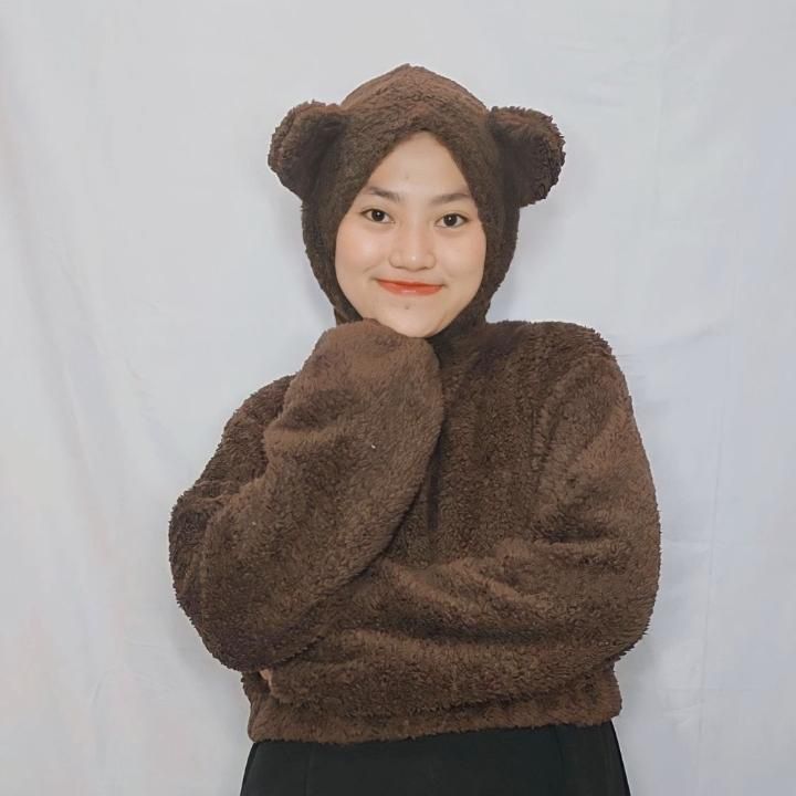 Hoodie sweater jaket wanita SHERPA CROP BEAR