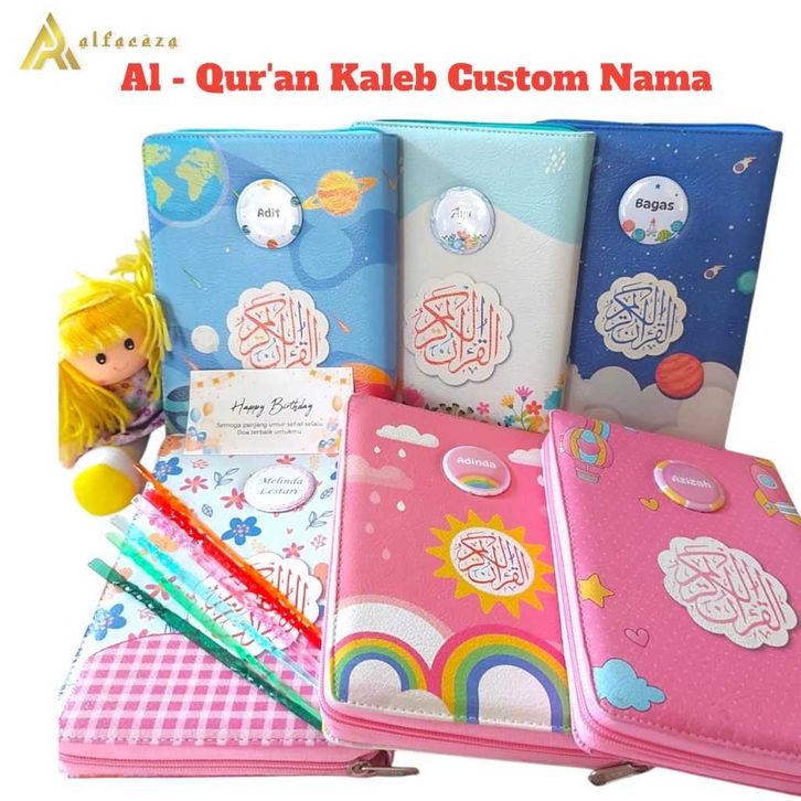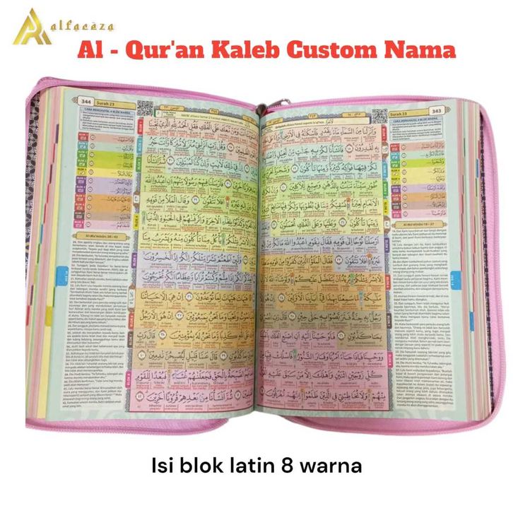 RK - Alfareza - Al-Quran A5 Kaleb Blok Latin 8 Warna Resleting+Custom Nama Di Pin IA5 Kaleb kantong Sleting+Pin Terjema