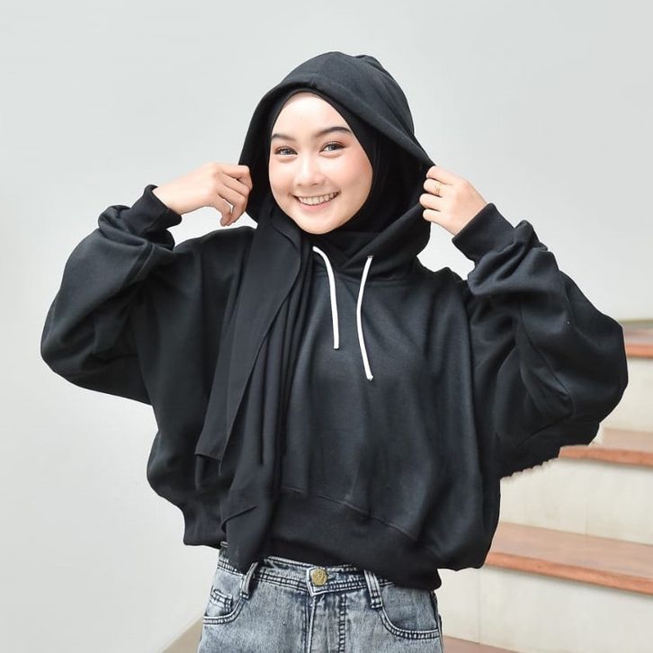Sweater Hoodie Crop (Rib) Wanita Size M - XXL Basic Sweater Hoodie Crop Atasan Wanita