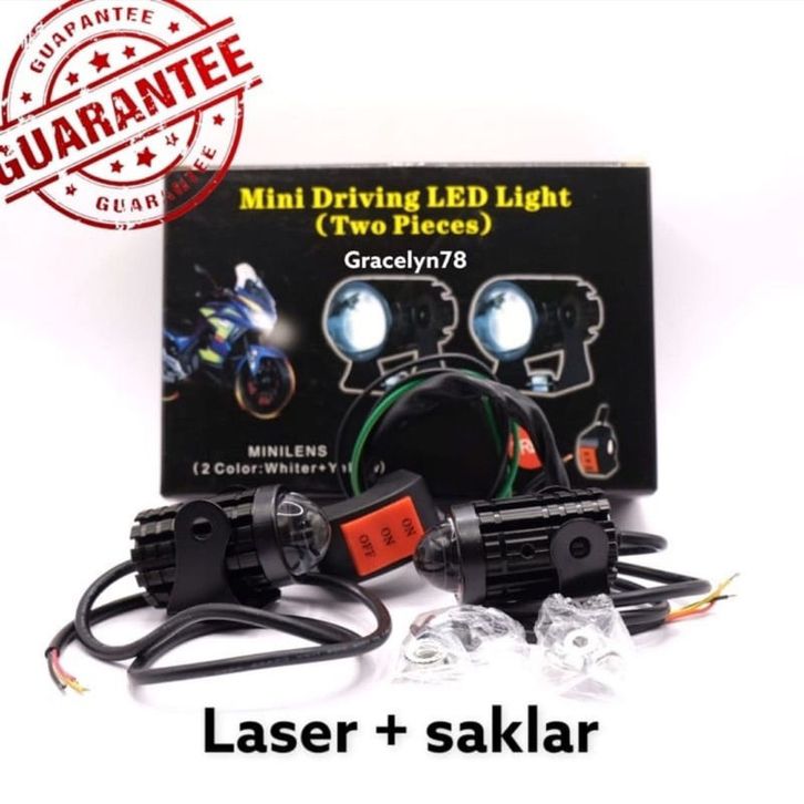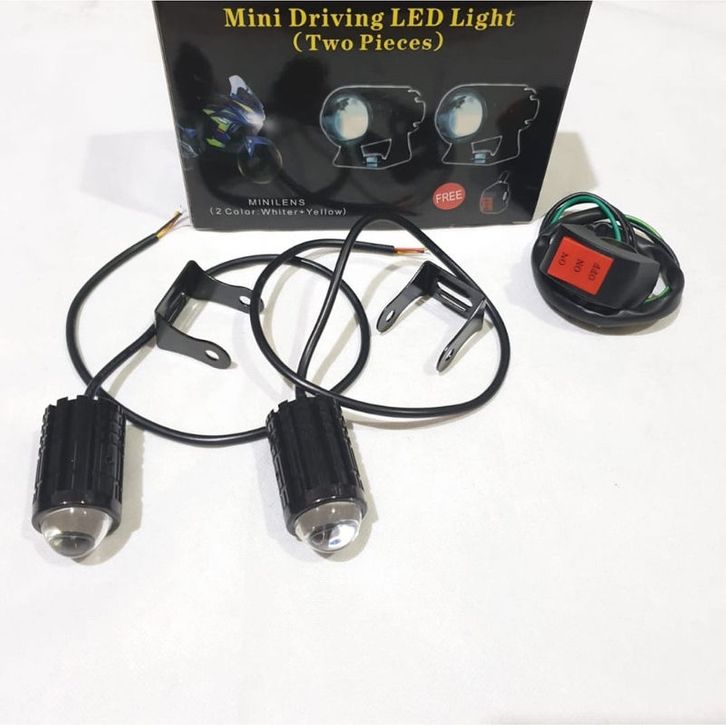 ( 2 PCS + SAKLAR ) LAMPU LASER MINI DRIVING LIGHT PUTIH KUNING JAUH DEKAT MOTOR DAN MOBIL