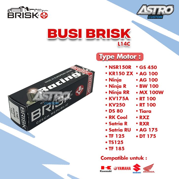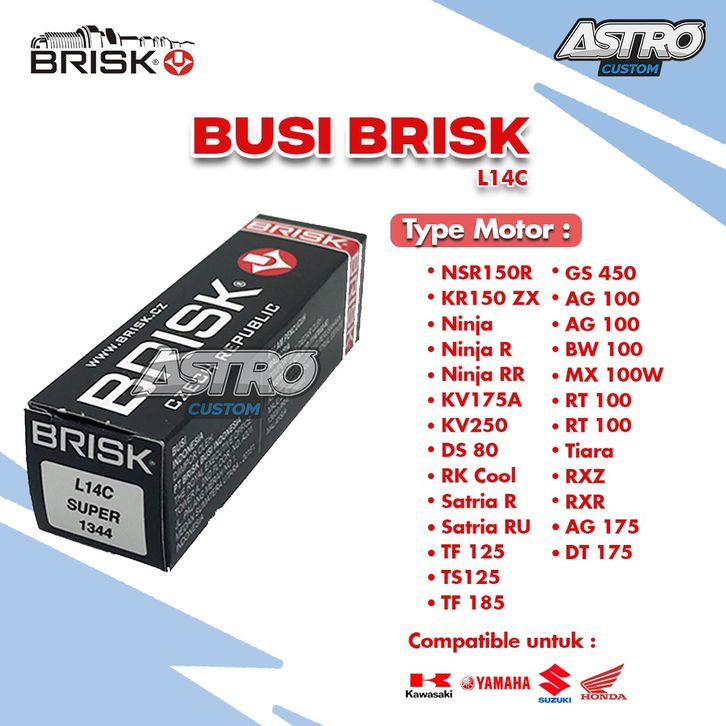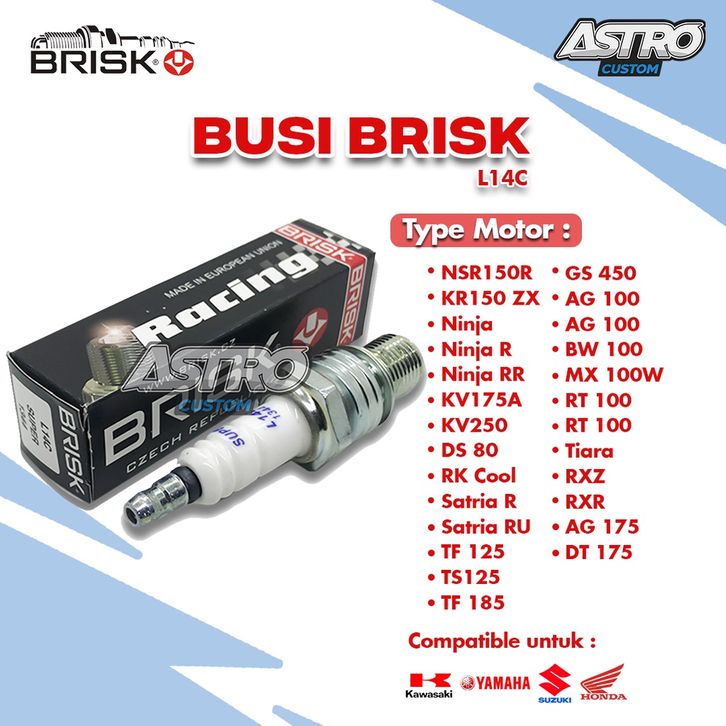 Busi Motor BRISK Ninja R Satria R RXZ NSR Tiara RXR DT 175 Lengkap DLL Copper L14C
