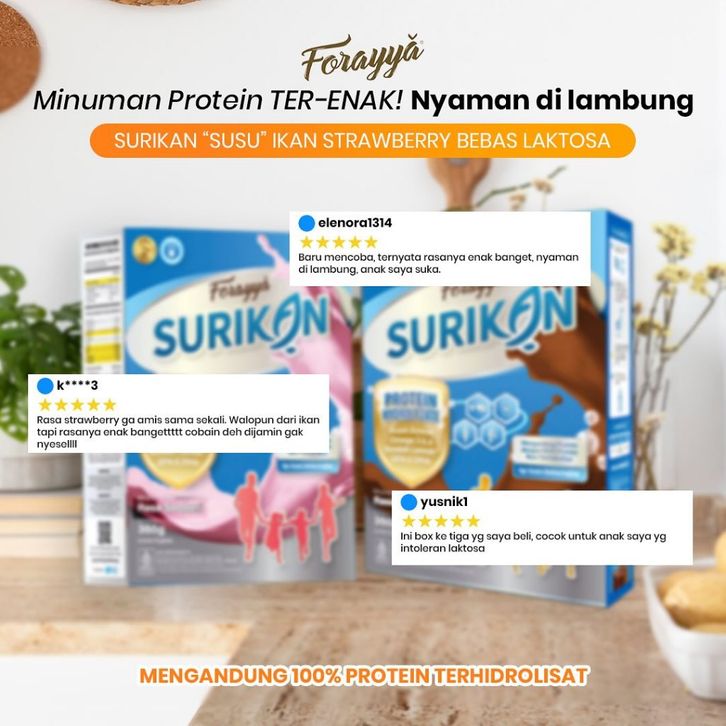 Surikan Strawberry Bebas Laktosa Tinggi Protein Susu Bubuk Anak Omega 3 EPA DHA 350gr