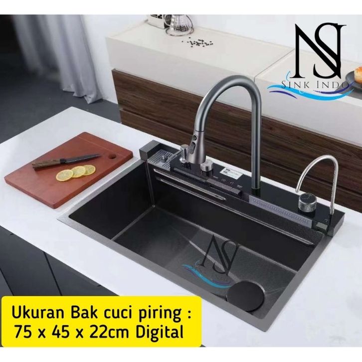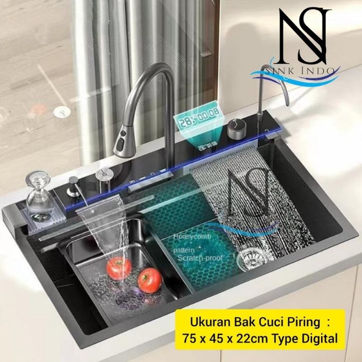 Bak Cuci piring Luxury / Kitchen Sink Luxury .ern Design Digital LED Bak Cuci piring stainless hitam 75 x 45 Kran