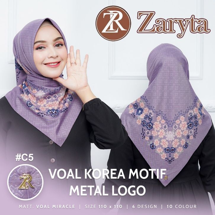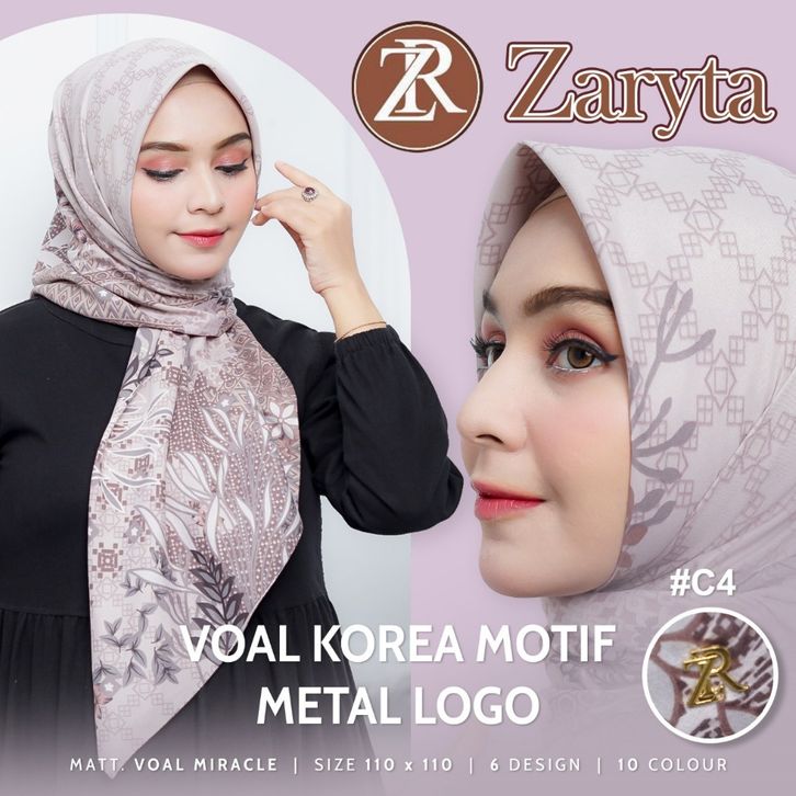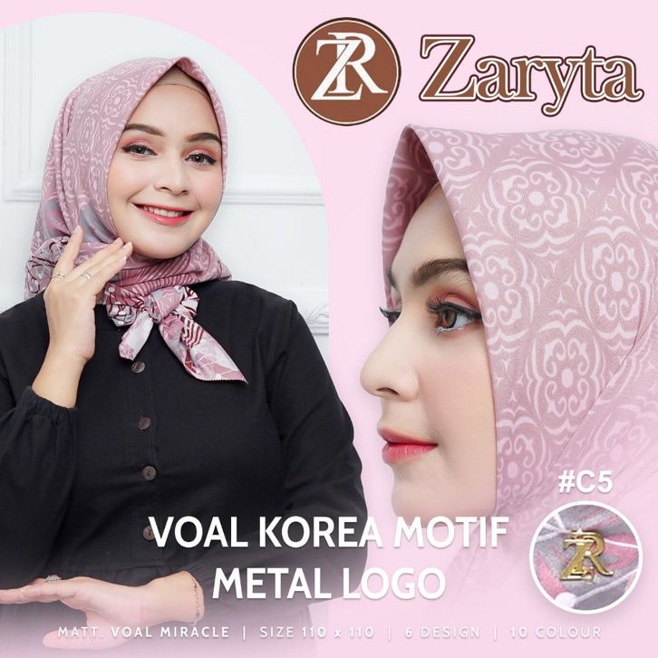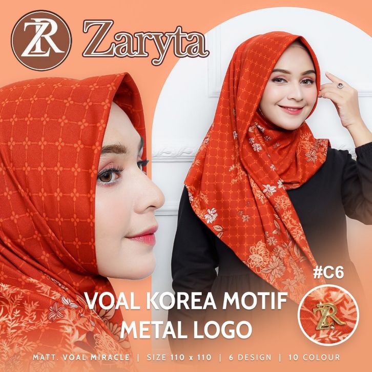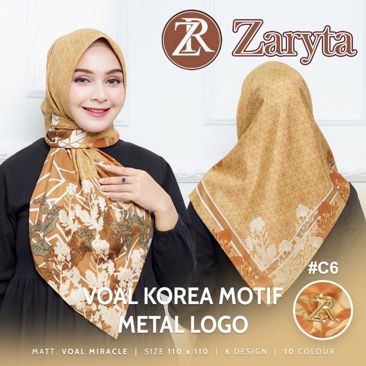 RK - 100 RBU Dapat 6 PCS Paket Hijab Zaryta Motif || Hijab Voal Premium Korea Metal Logo || Jilbab Segi 4 Motif Voal Za