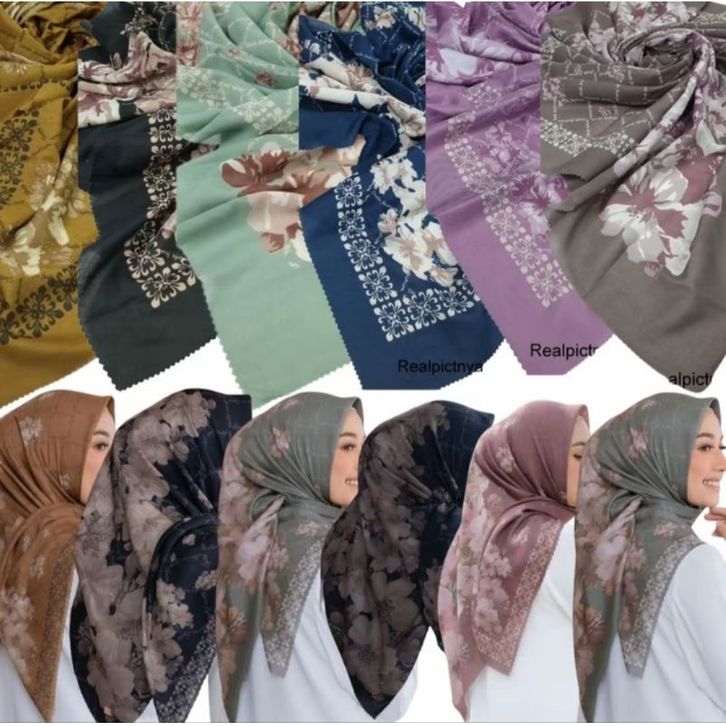 RK - Paket Usaha 7Pcs 100Rb Hijab Segi Empat Motif Azara Bebas Pilih Warna Bisa Juga Buat Seragaman