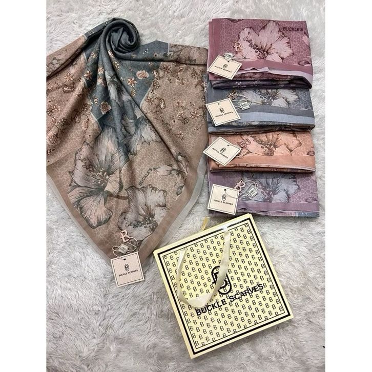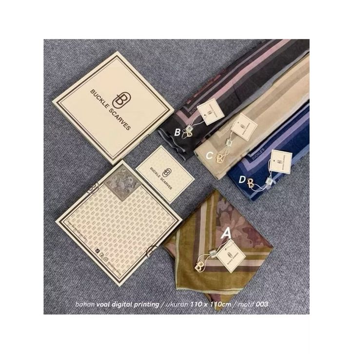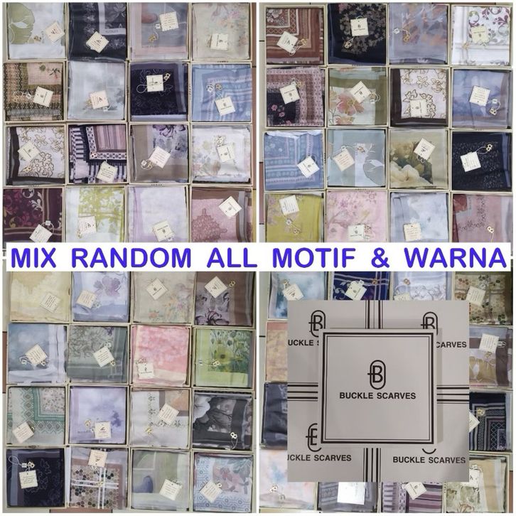 RK - PAKET HEMAT 3pcs HIJAB BUCKLE SCARVES MOTIF kmasan box hijab printing segiempat