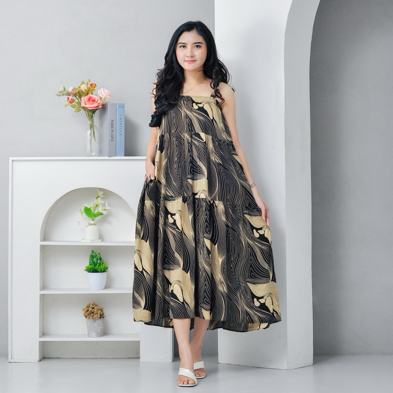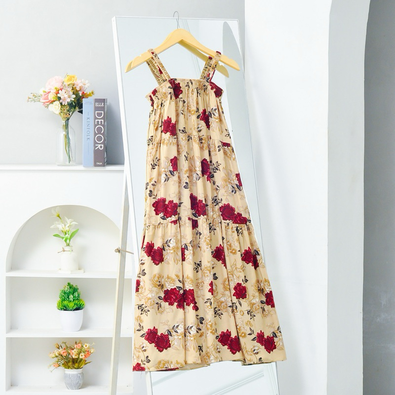 Lavanya Dress Tanpa Lengan Bumil Busui Dress Pantai Motif Bunga Rayon Viscose
