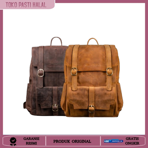 TAS KULIT PRIA RANSEL PRIA KERJA SEKOLAH Kenes Leather Tas Ransel Pria Kulit Asli Backpack ARTHUR - Free Grafir Nama