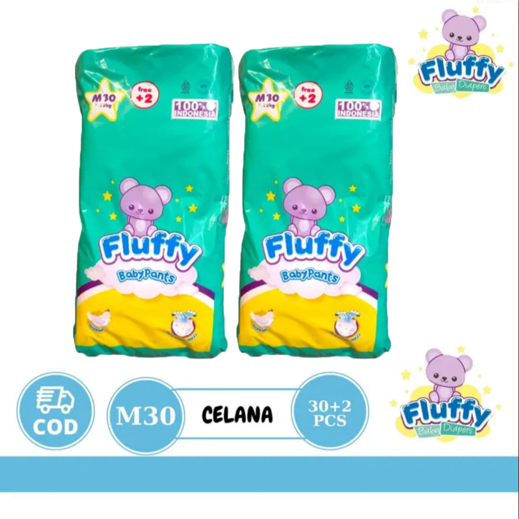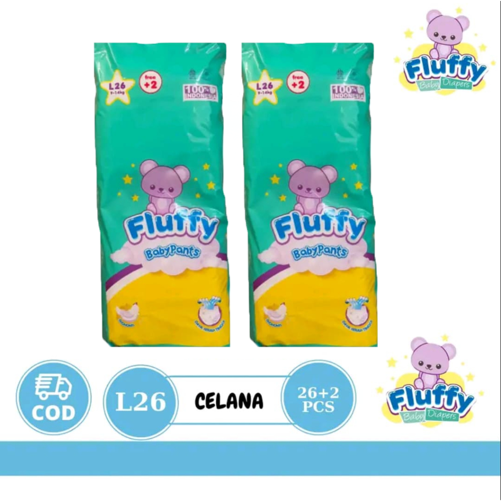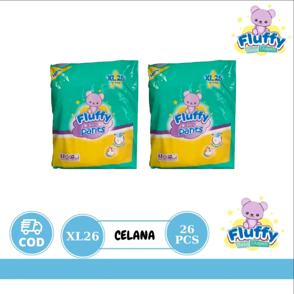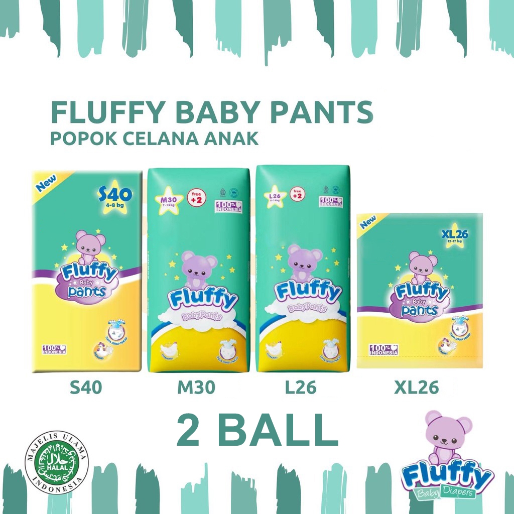 ( Promo Spesial ) Fluffy Paket 2 ball Pampers Popok bayi Celana ukuran S40 M30 L26 XL26