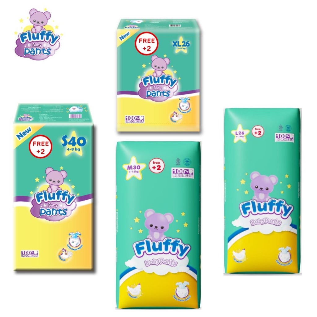 FLUFFY Popok Bayi Celana Size S40 M30 L26 XL26 Pcs