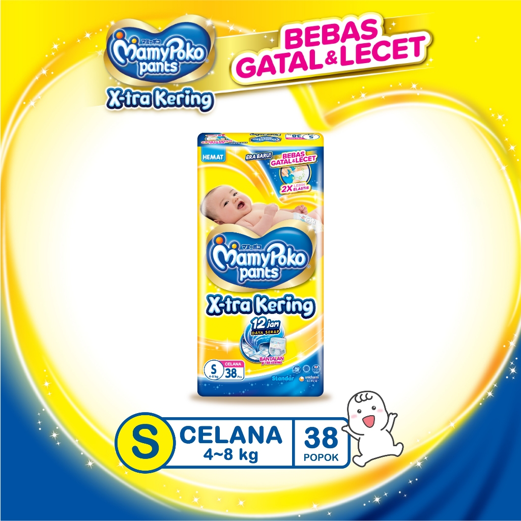MAMYPOKO XTRA KERING DIAPERS PANTS PACK SAP POPOK CELANA BAYI BABY NBS44 S38 M32 L28 XL26 XXL24 SOFT CLOUD DIAPER DRY FI