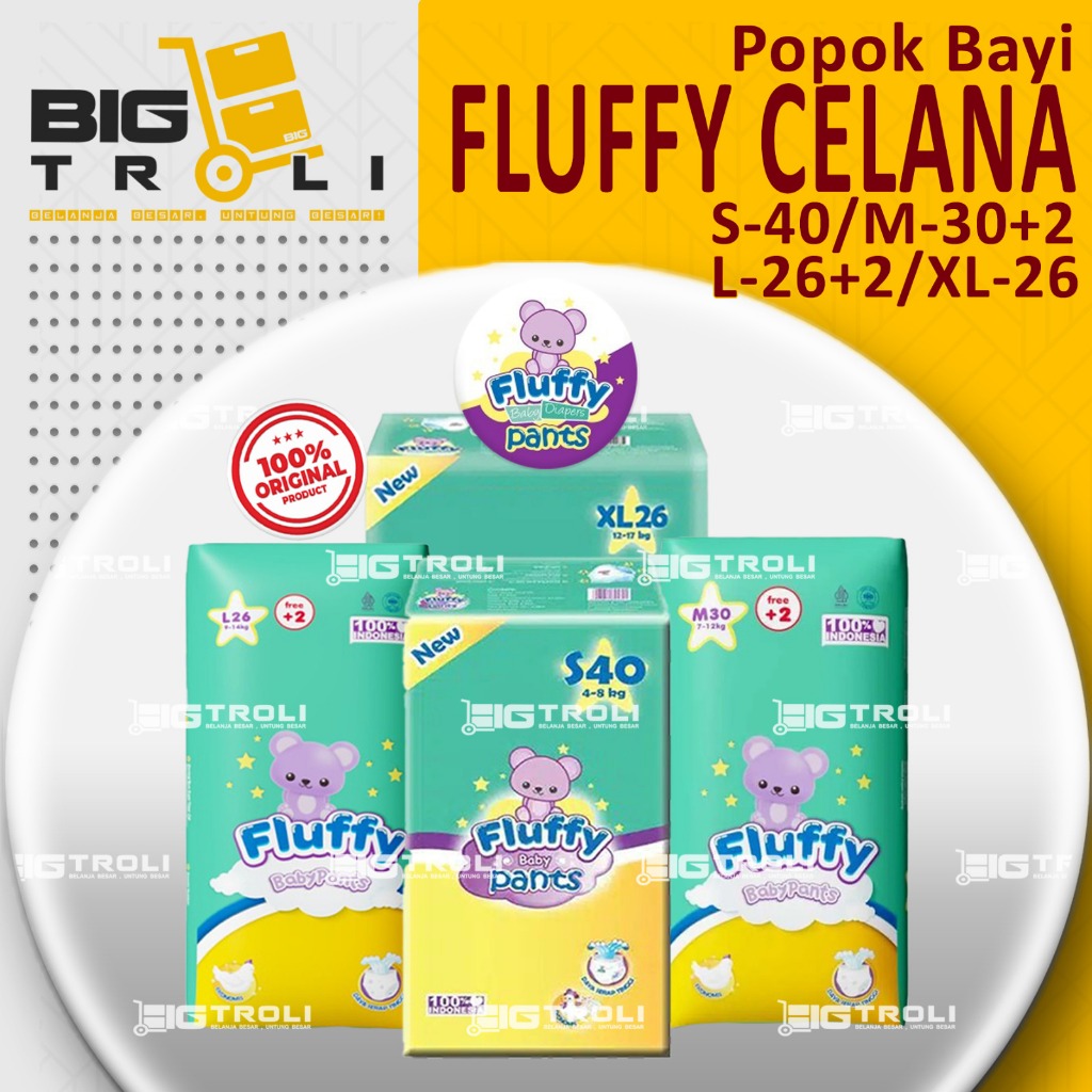 Fluffy Baby Pants | Popok Bayi Tipe Celana S40 | M30+2 | L26+2 | XL26