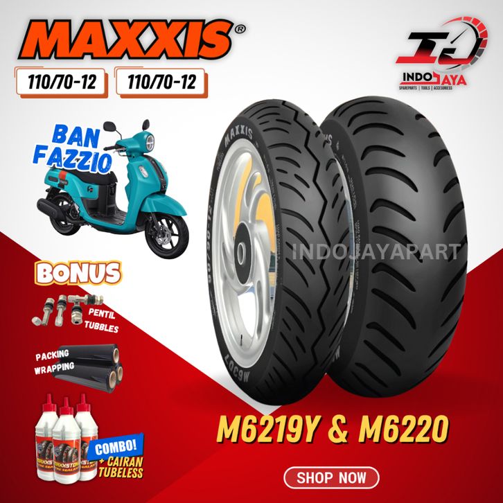 BAN MOTOR TUBELESS MAXXIS UNTUK FAZZIO M6219Y / M6220 (110/70-12) FRONT AND REAR