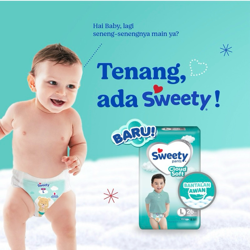 SWEETY SILVER Pant Pants M60 M 60 Popok Cloud Soft Celana Sekali Pakai Diaper Baby Bayi Diapers Promo Original Murah Ter
