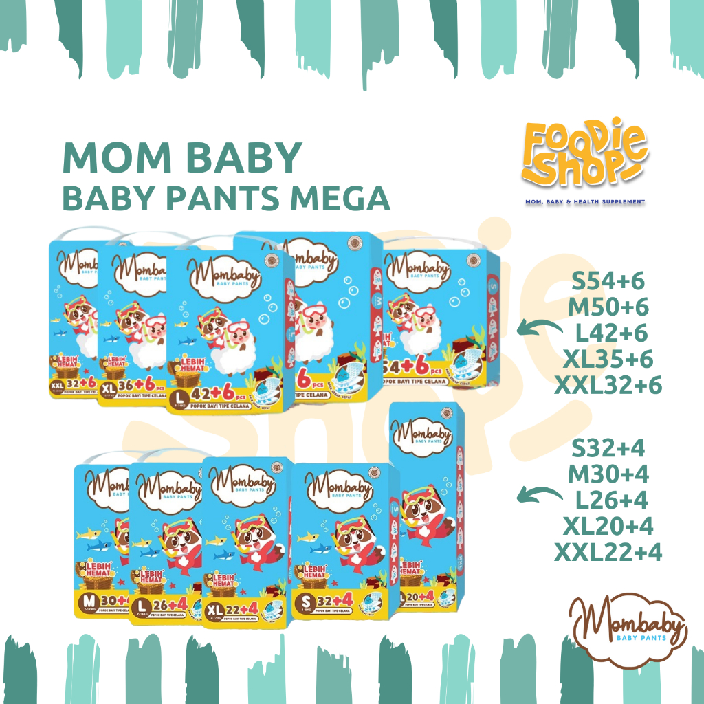 Mombaby Pants Mega Pack dan Jumbo Pack - S 54+6 | M 50+6 | L42+6 | XL 36+6 | XXL 32+6 | S 32+4 | M 30+4 | L 26+4 | XL 22