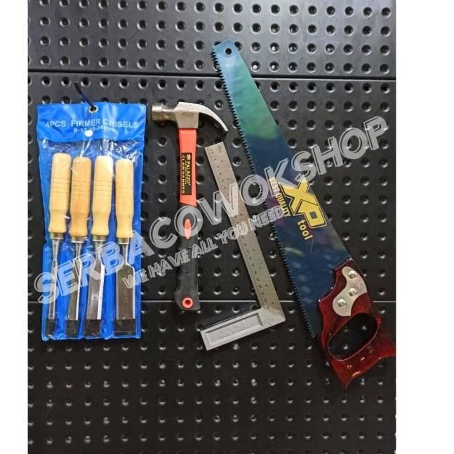 PAKET ALAT TUKANG PALU FIBER-PAHAT SET KAYU-SIKUMETER-GERGAJI KAYU