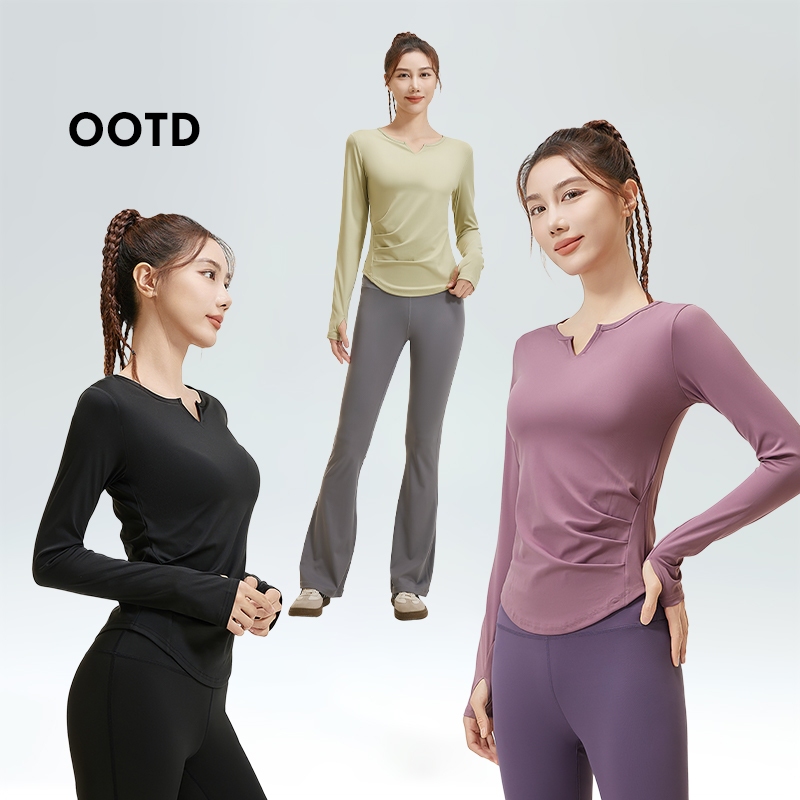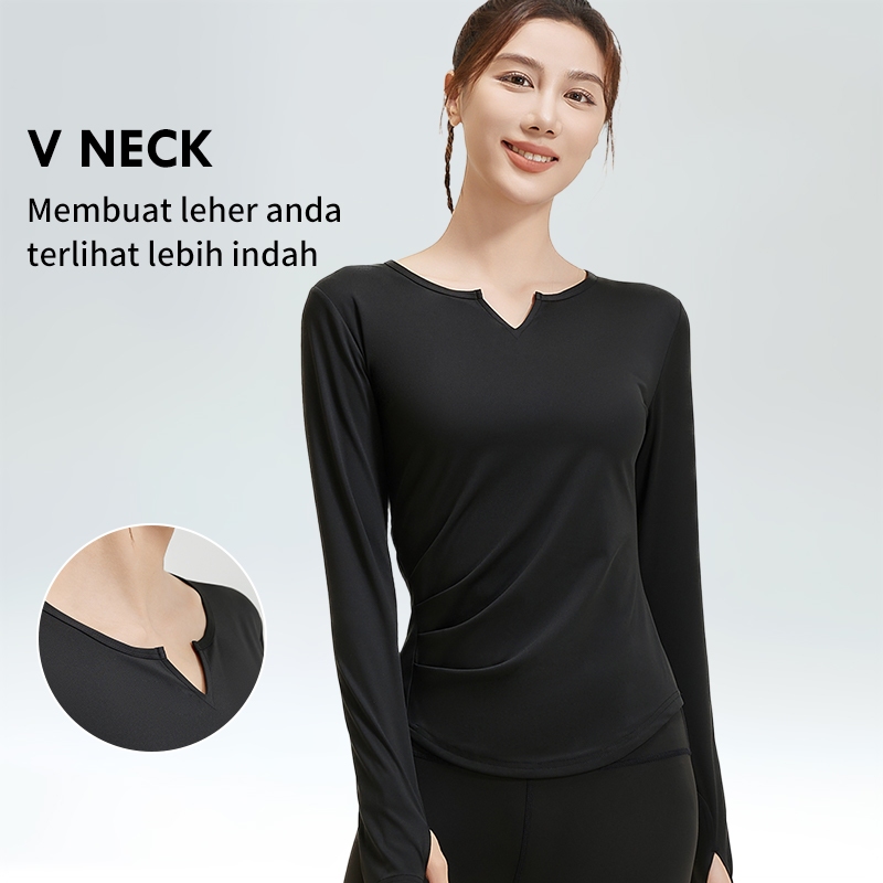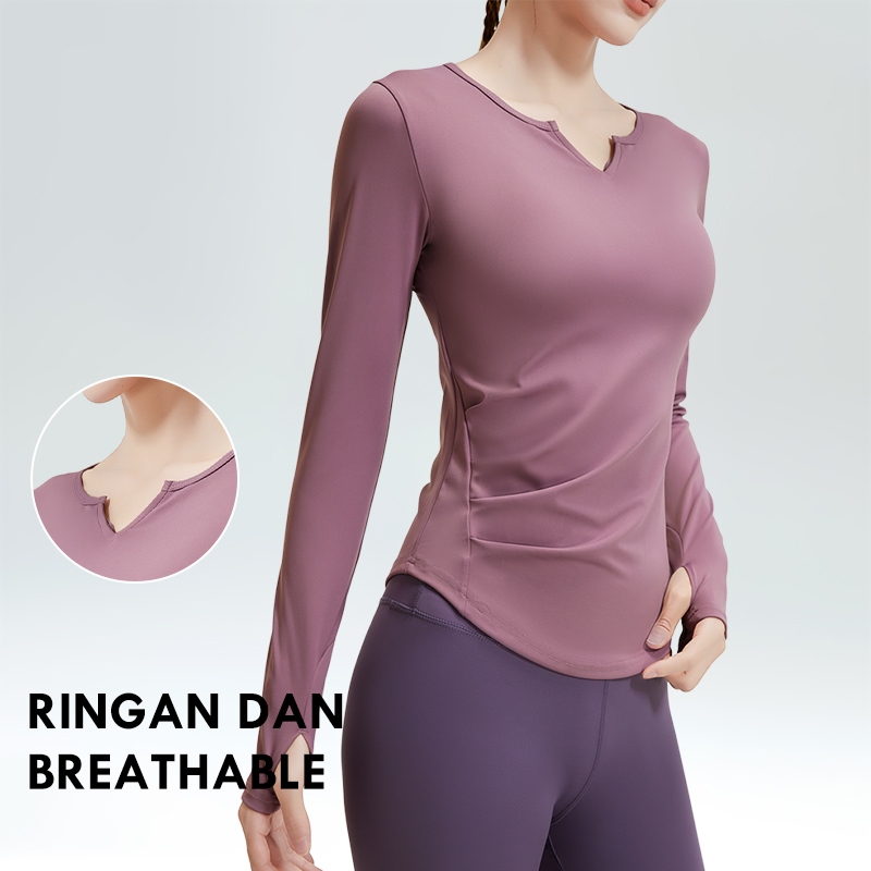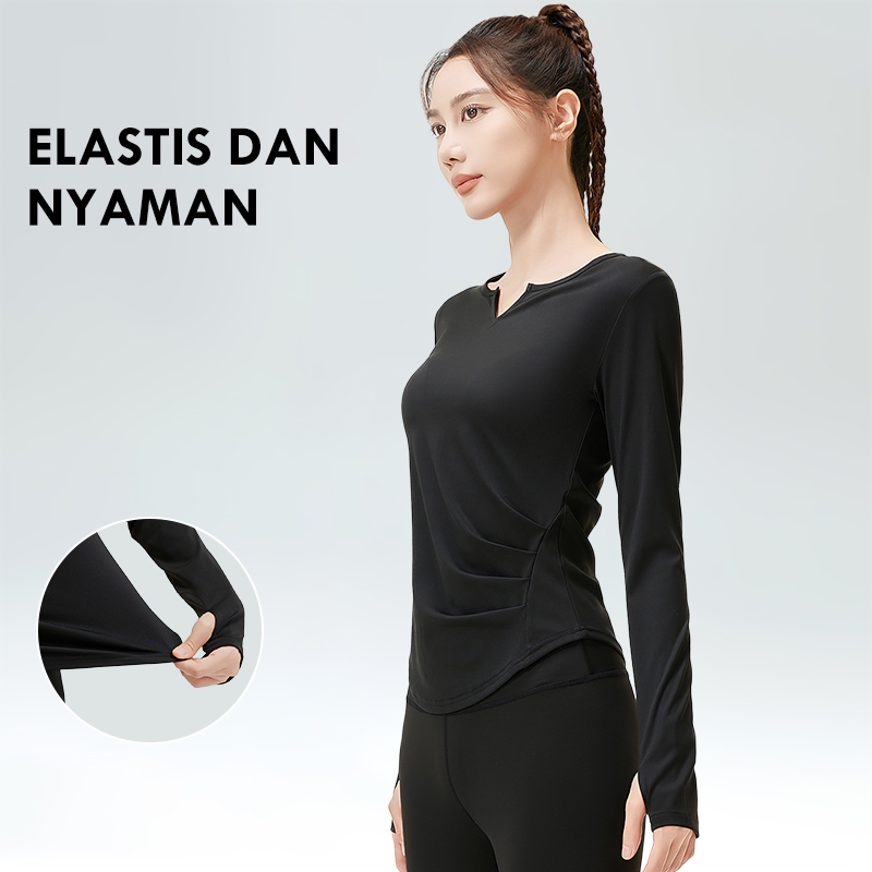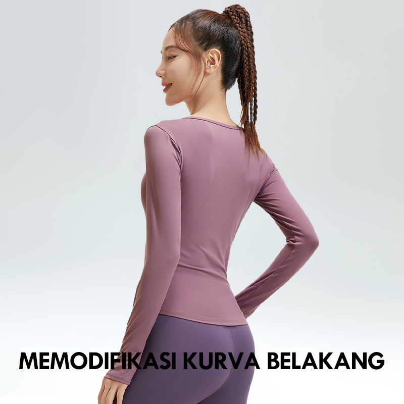 BAJU GYM KAOS OLAHRAGA WANITA MANSET LENGAN PANJANG PAKAIAN KETAT DRY FIT YOGA PILATES OUTFIT SPORT RUNNING T SHIRT LONG