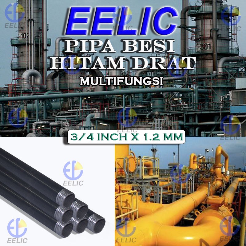 EELIC PBD-3/4IX1.2MM PIPA BESI HITAM DRAT BULAT POLOS 3/4"X1.2MM PANJANG 100CM UNTUK DIY MESIN-MESIN
