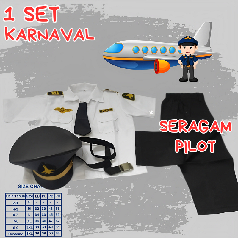 Setelan Baju Karnaval Anak TK PAUD – Kostum Pilot, TNI, Polisi | Baju Anak Laki-Laki Seragam Profesi
