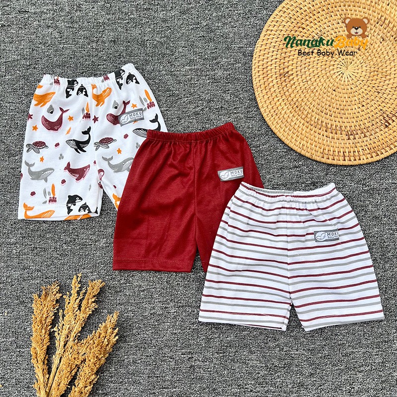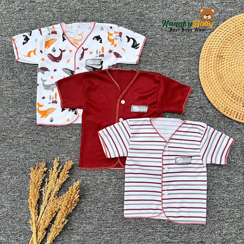 Nanaku Baby - Isi 3 Setelan Baju Bayi Baru Lahir Lengan Pendek Kancing Depan Series Maroon Usia 0-3 Bulan