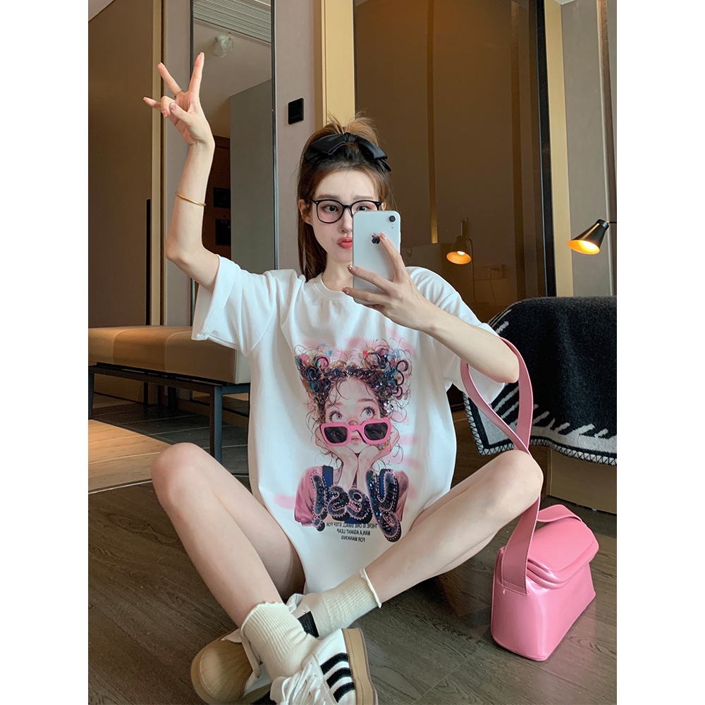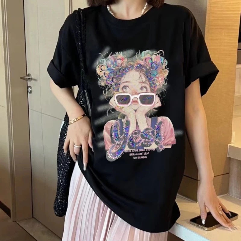 BASIQUE PUTIH BAJU KAOS OVERSIZE KAOS CUTE GIRL KOREAN STYLE BAJU ATASAN WANITA TERBARU 100 PERSEN COTTON