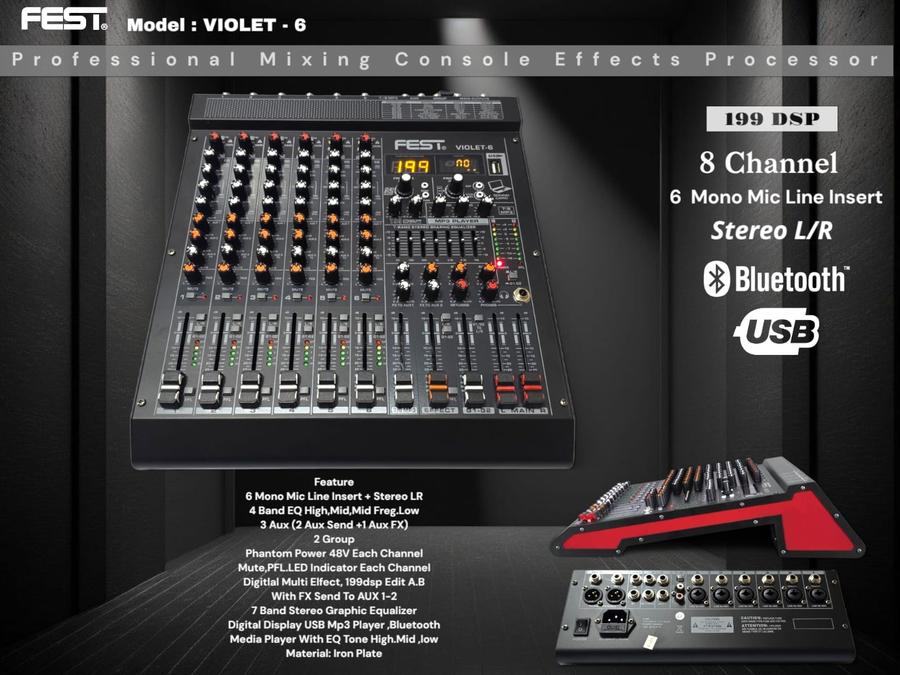 Mixer 6 Channel Fest Violet 6 | Violet 6 Original 6 Ch + Stereo L R Channel Bluetooth