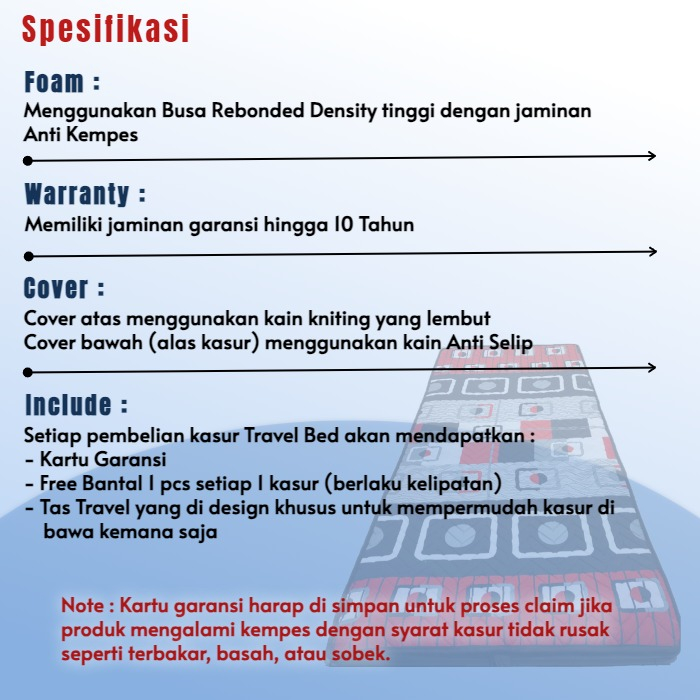 KASUR LANTAI / KASUR GULUNG / TRAVEL BED ERLAND GARANSI 10 TAHUN