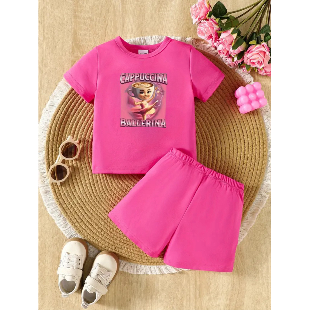 Setelan Baju Anak Perempuan Balerina Capuccina Anomali Tung Tung Sahur Umur 3-4 Tahun Bahan