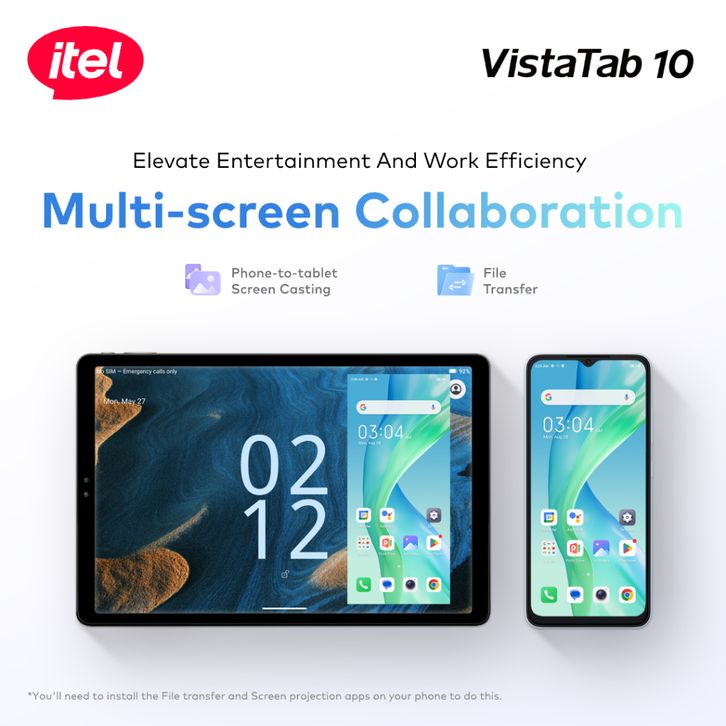 Tablet itel VistaTab 10 4GB+128GB - 10.1" HD+ IPS Display Screen - 6000mAh - Dual Speakers- AI Assistant with Learning C
