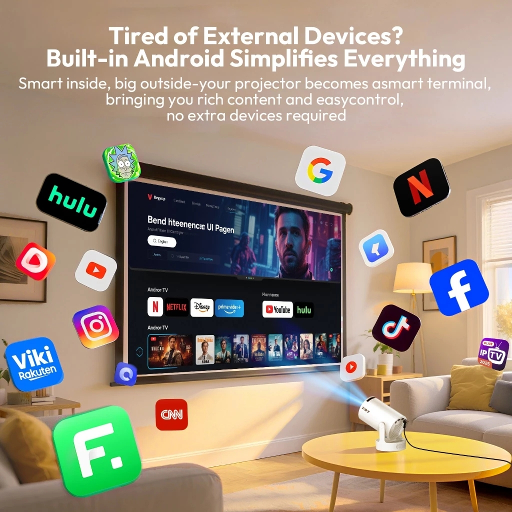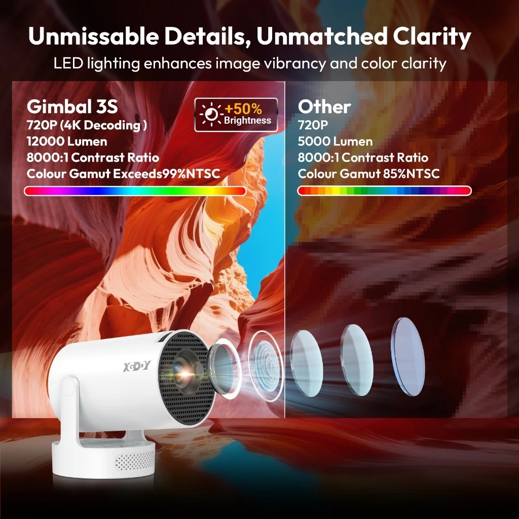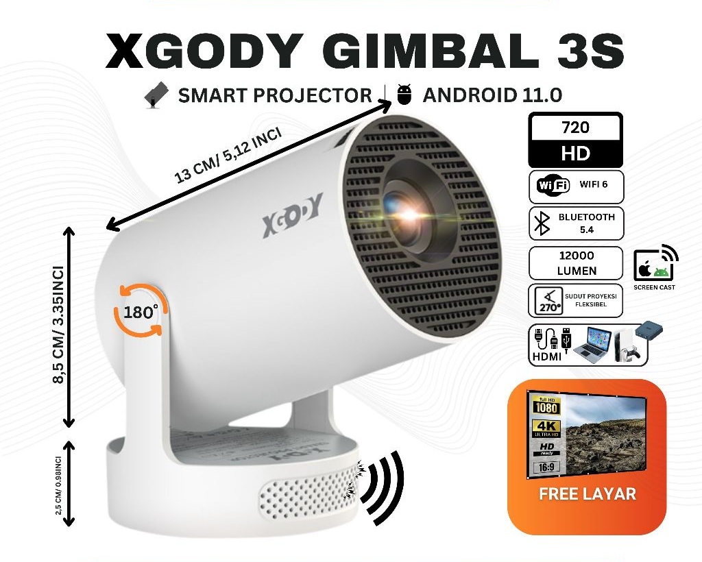 Smart Proyektor XGODY Gimbal3S LCD Android11- 720P - Built-in Speaker - Netflix - YouTube - 220 ANSI