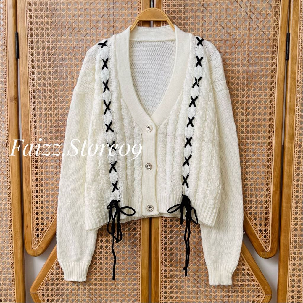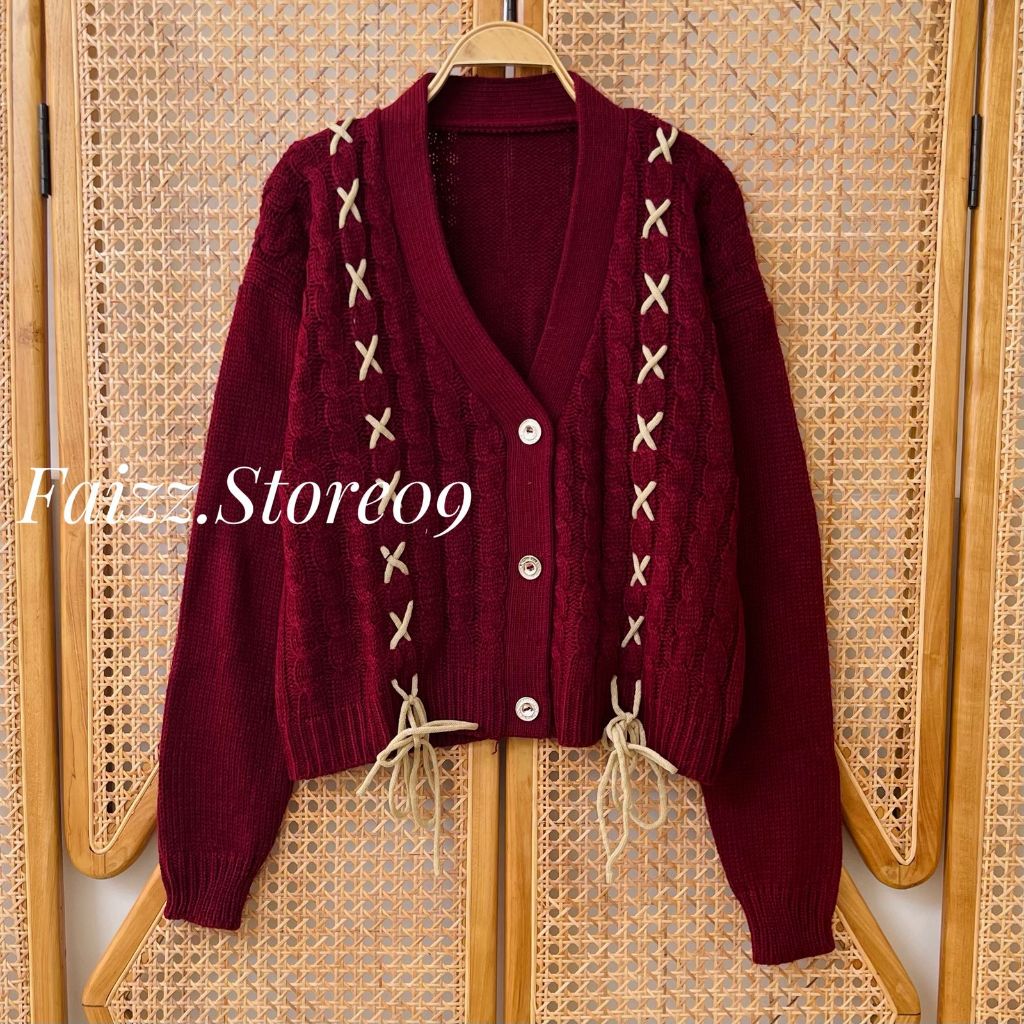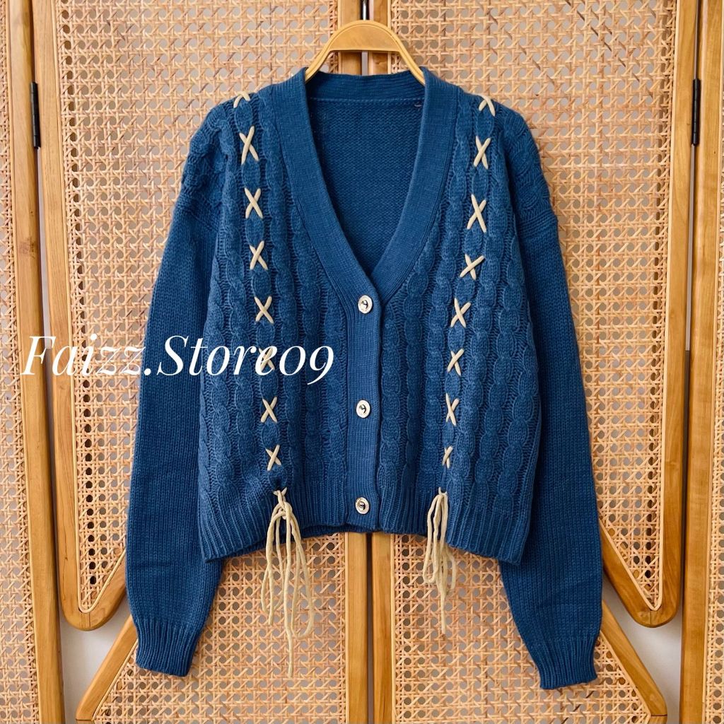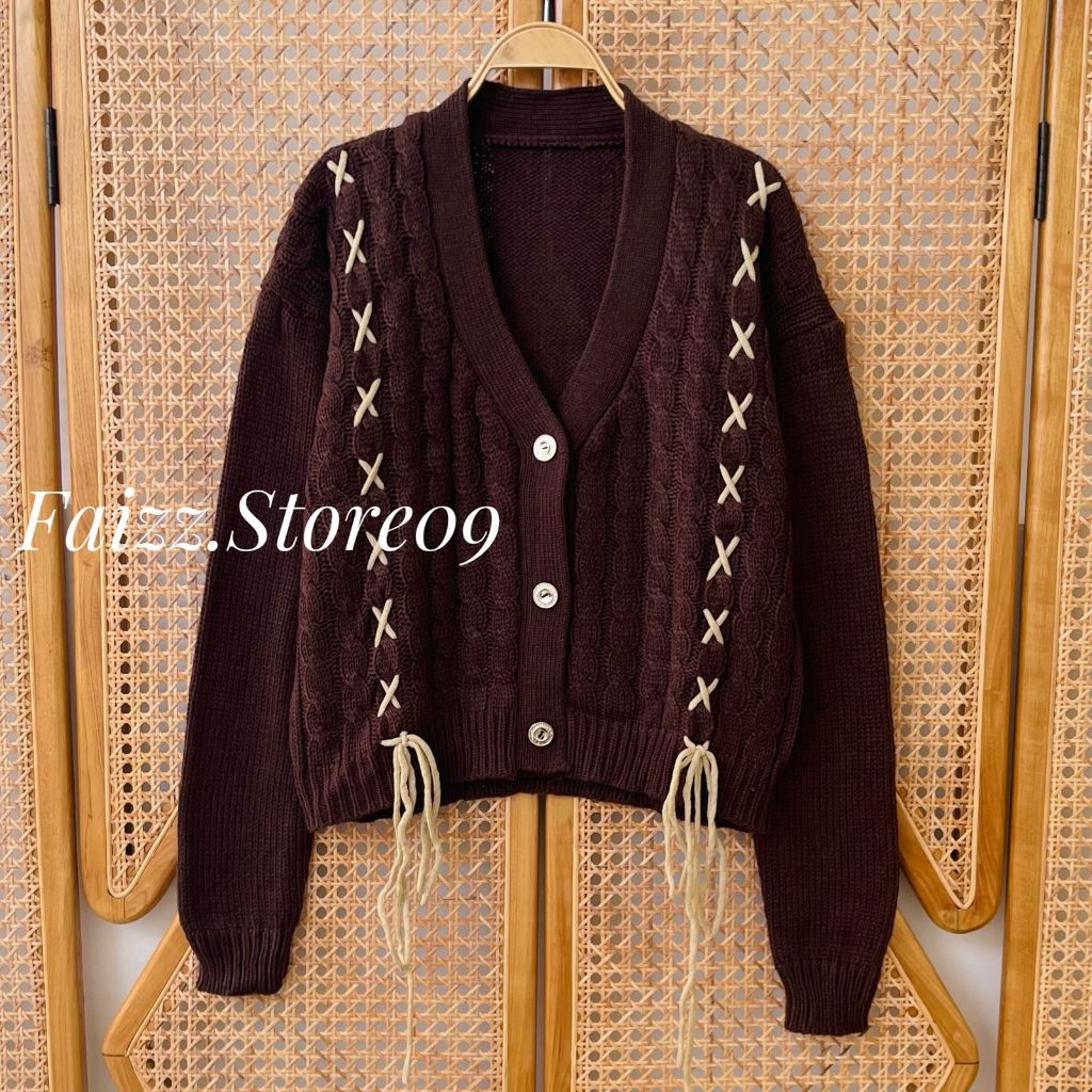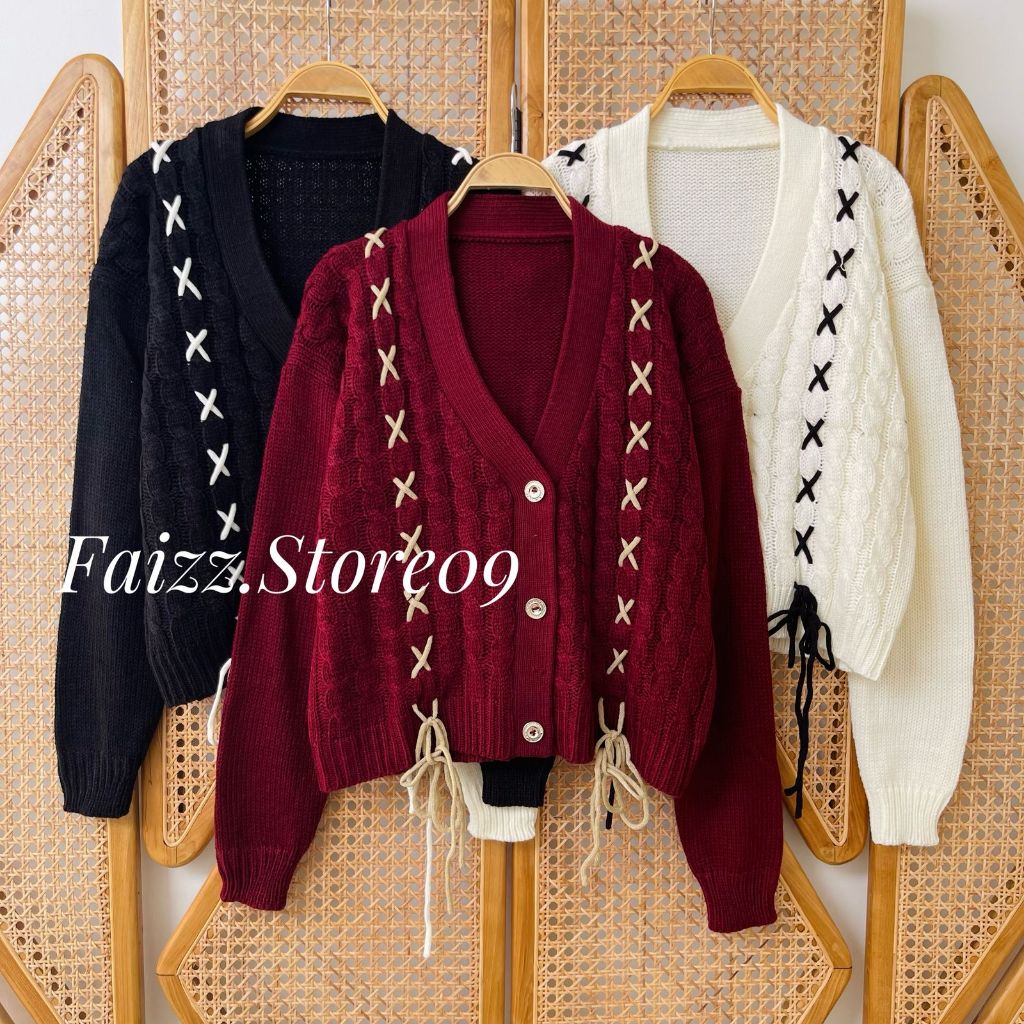 Armor Cardy Knitwear - Outer Atasan Cardigan Rajut Kancing Wanita Motif Cable Tali Kur Korean Style Premium
